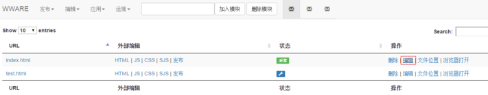 首先在站点编辑界面中打开需要添加js脚本页面的代码编辑页面,如下图所示点击页面后面的编辑按钮。