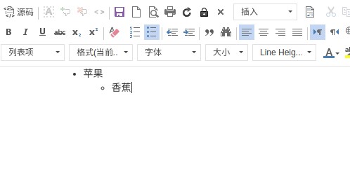 在页面添加无序列表,将“香蕉”向内缩进一级
