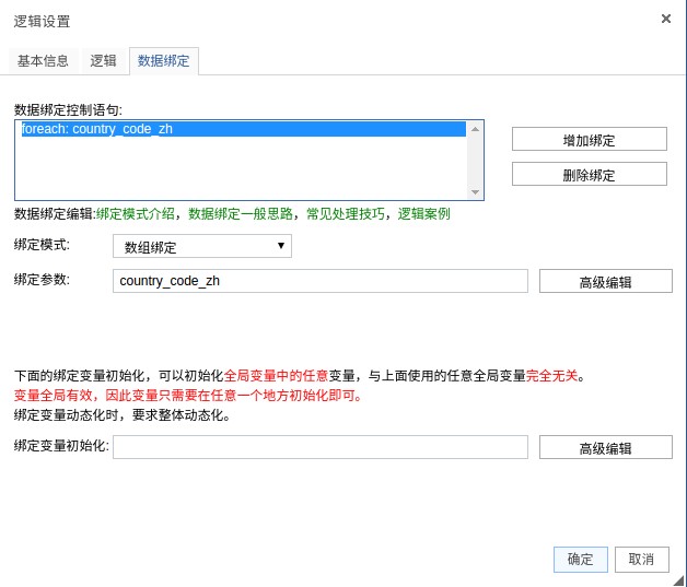 单击“苹果”,选择<ul>标签单击逻辑→数据绑定→数组绑定country_code_zh