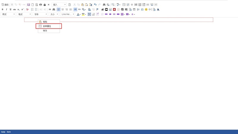 操作4:表单区域中右键,在出现的选项列表中选择“表单属性”。