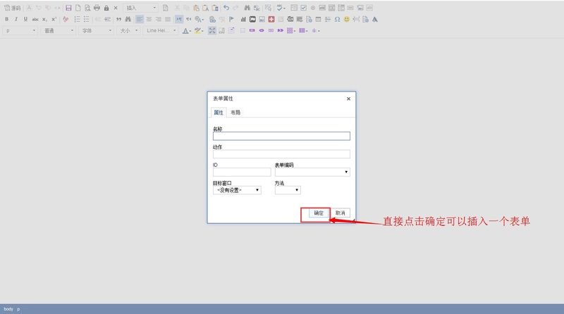 操作3:直接点击确定即可插入一个表单。
