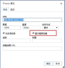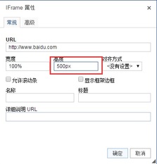 例如:如图所示,高度填写了“500px”,那么嵌入的页面的高度将是500像素。
