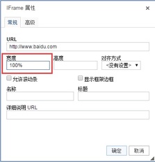 例如:如图所示,宽度填写了“100%”,那么嵌入的页面将是所在区域宽度的100%。(也可设置为“**px;”)