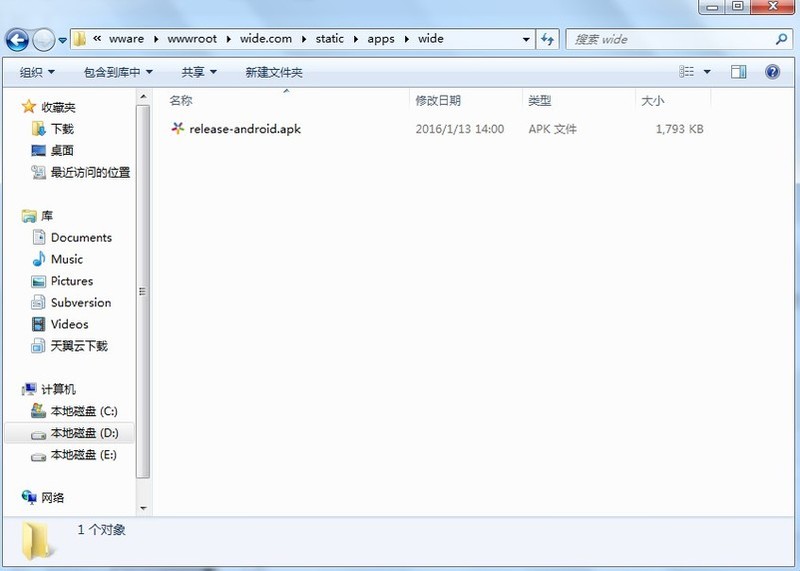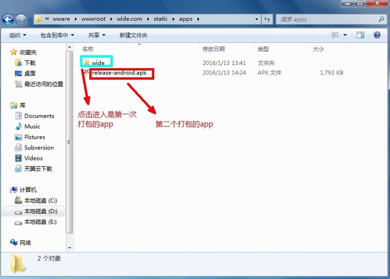 创建之后,会在svn目录中wware的wide.com里static生成app的安装包