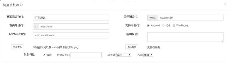 安装后的名称:填写APP安装在手机上之后显示的名称,比如:”打包测试“