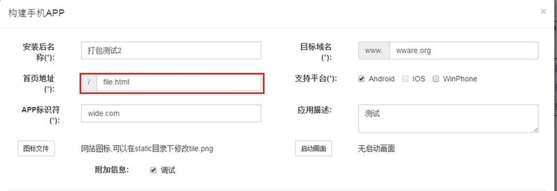 例如刚刚打包时首页地址填入:image.html。如果还想在此域名下再打包一个app,首页地址不能再使用image.html。这样会覆盖之前打包的app。首页地址路径不能重复 。