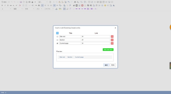 操作3:点击breadcrumbs按钮,弹出对话框。
